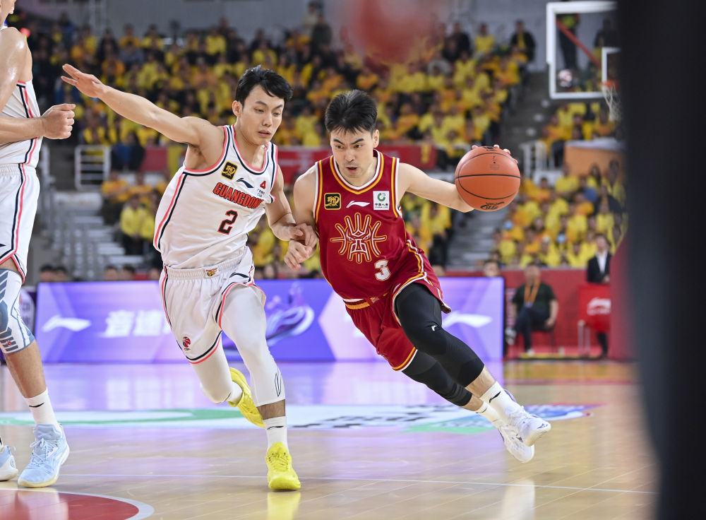 3月7日,山西隊(duì)球員賈明儒(右)在比賽中突破。當(dāng)日,在2024-2025賽季中國(guó)男子籃球職業(yè)聯(lián)賽(CBA)常規(guī)賽第37輪比賽中,山西隊(duì)主場(chǎng)117:115戰(zhàn)勝?gòu)V東隊(duì)。新華社記者 楊晨光 攝