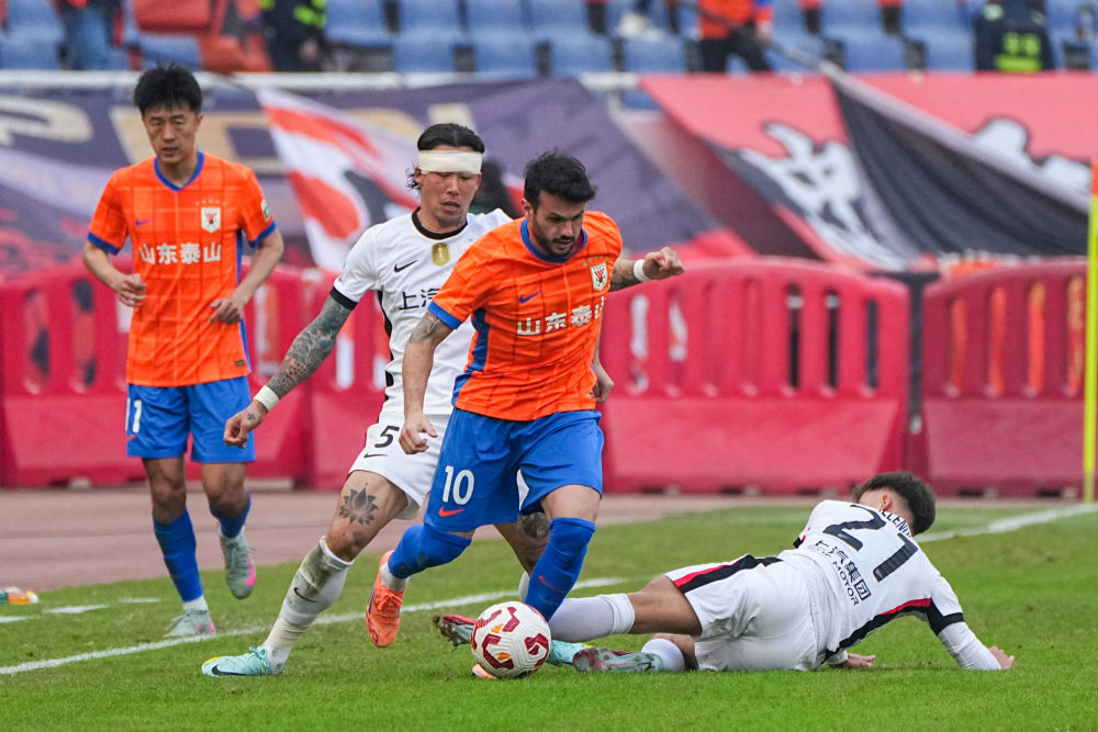 本輪比賽開始前,排名榜首的上海海港僅領(lǐng)先第二名成都蓉城2分。上海海港本輪客場對陣山東泰山,開場不久由李新翔打進一球,取得領(lǐng)先。但隨后山東泰山迅速調(diào)整,并逐漸掌握主動。第41分鐘,山東泰山外援澤卡反擊中突破送出斜傳,卡扎伊什維利跟進殺入禁區(qū)低射,將比分扳為1:1。