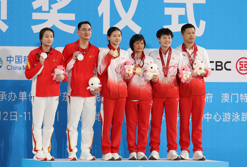 11月11日,獲得冠軍的廣東隊選手林珊(左三)、獲得亞軍的四川隊選手陳佳(左一)、獲得季軍的廣東隊選手陳藝文(右二)和她們的教練員在頒獎儀式上合影。新華社記者 楊世堯 攝 拳擊賽場,巴黎奧運會亞軍、內蒙古選手楊柳在女子66公斤級半決賽中不敵河南隊選手李書,無緣決賽。 男籃半決賽,浙江隊以80:77爆冷戰(zhàn)勝擁有周琦和胡金秋的四川隊,歷史上首次闖入全運會決賽。廣東隊以92:73大勝遼寧隊,將在決賽中迎接浙江隊的挑戰(zhàn)。