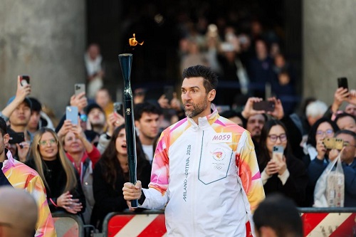 2025年12月6日,在意大利羅馬萬(wàn)神殿,火炬手、意大利籃球運(yùn)動(dòng)員安德烈亞·巴爾尼亞尼在傳遞火炬。當(dāng)日,2026年米蘭-科爾蒂納冬奧會(huì)火炬在意大利羅馬傳遞。新華社記者李京攝