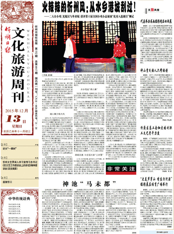 由忻州市文聯(lián)、忻州市劇協(xié)選送的二人臺小戲《光棍漢與外來妹》(表演:呂改萍、張璟、任浩)入選在江蘇省張家港市舉辦的第六屆全國小戲小品展覽演出,將與郭達(dá)、李文啟等全國著名笑星同臺競技,成為近3年來山西唯一一個(gè)登上全國小戲小品展演舞臺的“狀元郎”!