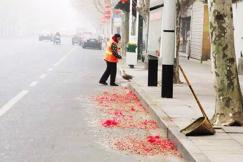 45歲的環(huán)衛(wèi)工張秀生告訴筆者,“越是節(jié)假日,越不能停歇,把路面收拾得干干凈凈,老百姓走著舒坦,我心里也高興?!边@幾天風(fēng)大天冷,張師傅卻干得特別有勁。不到2個(gè)小時(shí),城區(qū)健康中街周邊的垃圾全部清理干凈?!白蠲Φ臅r(shí)候就是下午四五點(diǎn)鐘,路上的垃圾數(shù)量明顯增加。”張師傅說(shuō),有時(shí)他一直忙到晚上6點(diǎn)才回家,第二天早上,不到4點(diǎn)他就從床上爬起來(lái)了。據(jù)悉,春節(jié)期間,城區(qū)的環(huán)衛(wèi)工人基本全部在崗,許多環(huán)衛(wèi)工人甚至提前到崗清掃街道,確保市容整潔。張師傅希望市民們春節(jié)燃放鞭炮時(shí)不僅要注意安全,還要保護(hù)環(huán)境衛(wèi)生。