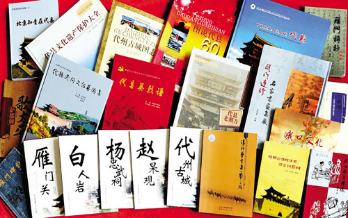 由程培甫、馮祥主編的《雁門碑抄》收錄了唐代以來鐫刻在代縣各地的古碑碑文98篇,詔、敕、封誥19篇,從不同的側(cè)面反映和記錄了代縣悠久的歷史和博大的文化內(nèi)涵,是挖掘、整理、弘揚雁門文化極其珍貴的歷史資料。由王文藻主編的《雁門詩抄》,分“人物篇”和“形勝篇”兩本?!叭宋锲眳R集了有詩詠代的代州人,或在代地作過官,或因事涉足過代地的83位歷史人物和詠贊他們的230首詩詞,意在讓今人了解古人的業(yè)績政聲,學(xué)習(xí)古人的品格情操。“形勝篇”則收集了歷代仕宦、詩人、騷客、雅士游覽代州時寫下的300多首詠贊代州壯美山河、名樓勝跡的古代詩詞,意在讓今人更好地挖掘、了解、弘揚博大精深的雁門文化,推動代縣旅游事業(yè)的發(fā)展,促進縣域經(jīng)濟的振興。2008年由山西人民出版社出版的《代縣老照片》,收集了代縣從清朝末年到上世紀(jì)50年代拍攝的360多幅珍貴的歷史照片,分為古城遺跡、雁門雄關(guān)、教育篇章、代商風(fēng)采、社會百態(tài)、名人佚事、革命史詩等七個篇章,結(jié)為一集。翻閱這些泛黃的老照片,讀者可以欣賞文化名城宏偉壯觀的古老建筑,瞻仰歷史名人的風(fēng)姿俊采,領(lǐng)略代州驕子的雄才大略,感受有識之士的宏圖大志,體會莘莘學(xué)子的凌云壯志……透過這些老照片,我們既能追尋歷史,更可展望未來。2009年出版的《圖說代縣60年》,以編年體的形式,按照時間順序,選取每年在代縣大地上發(fā)生的重大事件、重要人物,或是能真實反映當(dāng)時當(dāng)?shù)鼐哂袝r代特色、風(fēng)土人情的歷史照片780多幅,配以簡明扼要的文字說明,形象生動地再現(xiàn)了新中國成立60年來代縣發(fā)展變化的歷史進程,是新中國60年發(fā)展變化的一個縮影。它所包含的信息和所起到的作用會超越時空,成為后人認(rèn)識歷史演變的生動教材。同年出版的《代縣古城圖志》則以圖文并茂的形式,向讀者介紹了代州古城的歷史沿革、代州古城的城垣、街衢、商貿(mào)、衙廨、教育、寺廟、風(fēng)俗風(fēng)物、歷史人物等內(nèi)容,展示了古代州悠久的歷史和深厚的文化底蘊,為人們提供了一個了解代州古城的窗口。
