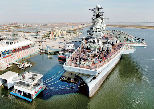 2000年8月,俄羅斯“基輔”號(hào)航母越過北冰洋、大西洋、印度洋、太平洋,抵達(dá)中國天津。2006年4月,泰達(dá)控股旗下的泰達(dá)航母主題公園有限公司成立。公司以“基輔”號(hào)航母旅游資源為主體,將園區(qū)打造成為世界上最大的軍事主題公園。2011年,主題公園收入突破一億元,成為天津市首個(gè)收入過億的單一景點(diǎn)。