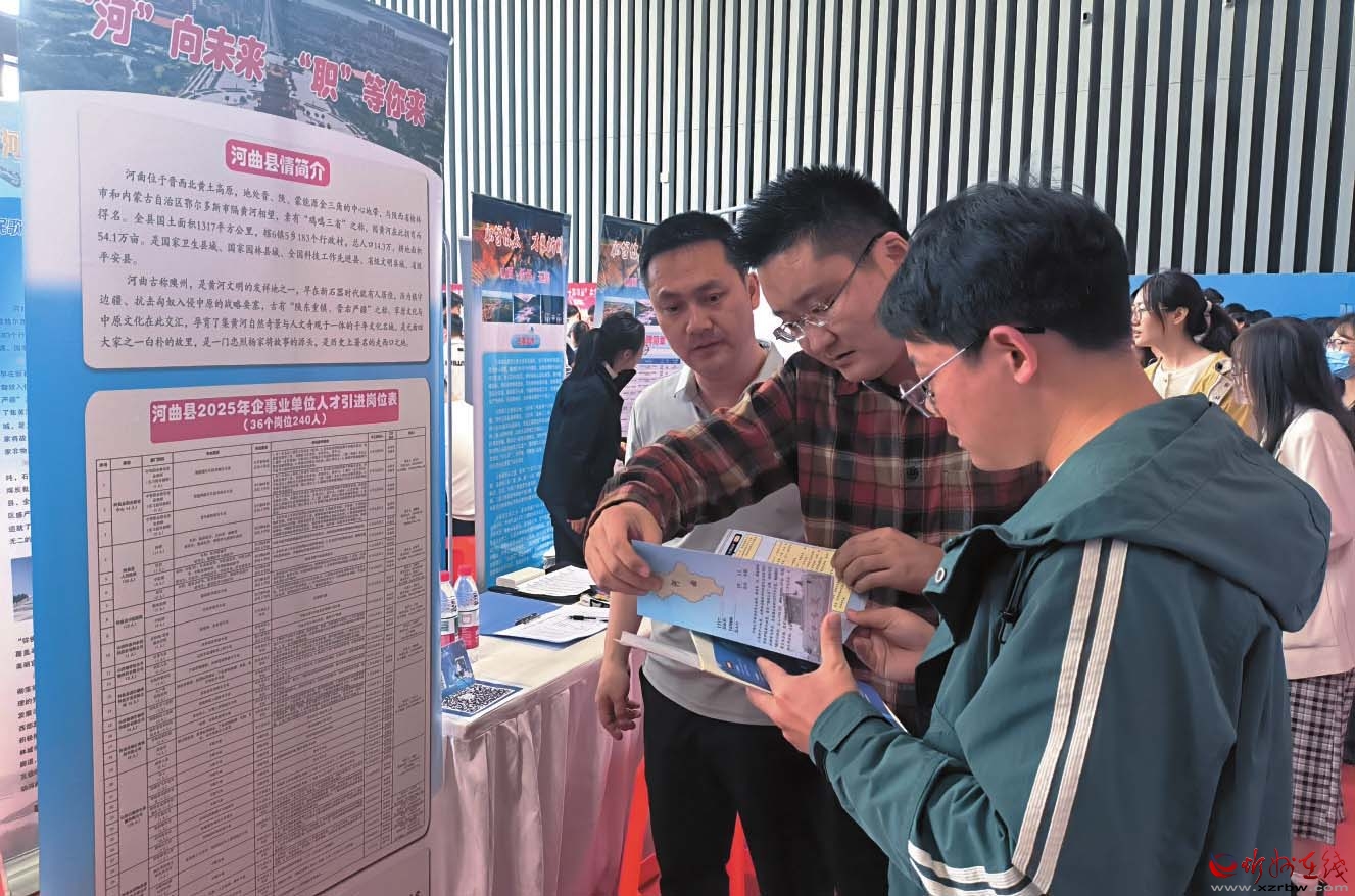 “我們帶來(lái)了工藝技術(shù)員、質(zhì)量工程師等8個(gè)崗位,擬招聘20人,沒(méi)想到半個(gè)小時(shí)就收到10多份簡(jiǎn)歷!”位于原平經(jīng)濟(jì)技術(shù)開(kāi)發(fā)區(qū)的山西中盈萬(wàn)維耐磨材料有限公司招聘負(fù)責(zé)人王經(jīng)理對(duì)記者說(shuō)。記者看到,該公司展位被圍得水泄不通,招聘人員一邊快速翻閱簡(jiǎn)歷,一邊耐心解答技術(shù)崗薪資待遇問(wèn)題。不遠(yuǎn)處的河曲縣招聘展區(qū),山西師范大學(xué)化學(xué)專(zhuān)業(yè)的張雪正仔細(xì)閱讀《河曲縣2025年企事業(yè)單位人才引進(jìn)崗位表》?!拔沂切弥菸迮_(tái)縣的,剛才聽(tīng)了現(xiàn)場(chǎng)宣講才知道碩士學(xué)歷能走人才引進(jìn)通道,不僅可以享受相關(guān)人才補(bǔ)貼,還能直接落編。”她馬上投遞了簡(jiǎn)歷,“既能建設(shè)家鄉(xiāng)又能享受優(yōu)厚待遇,何樂(lè)而不為?”