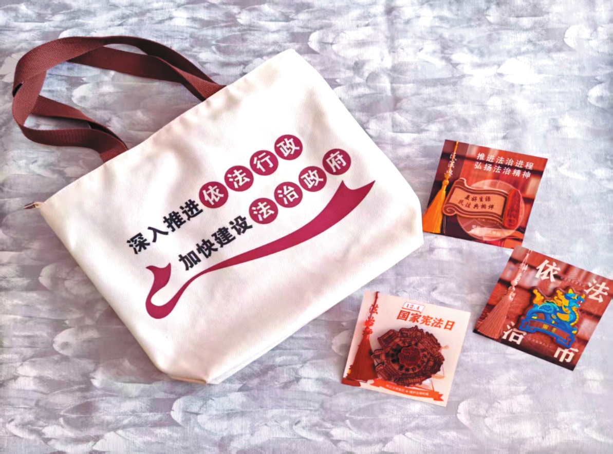行走的法治與非遺宣傳:帆布包上的流動(dòng)風(fēng)景線。除木雕冰箱貼外,帆布袋成為“普法+非遺”系列文創(chuàng)產(chǎn)品的一大亮點(diǎn)。雙面印有宣傳圖案,正面“依法行政”“法治政府”主題鮮明,背面則是忻州非遺與景點(diǎn)交織圖,靜樂剪紙、撓羊賽、北路梆子等非遺元素與忻州古城、五臺(tái)山等景點(diǎn)相互輝映,構(gòu)成生動(dòng)文化圖卷,讓群眾沉浸于法治“文化味”與非遺“煙火氣”。