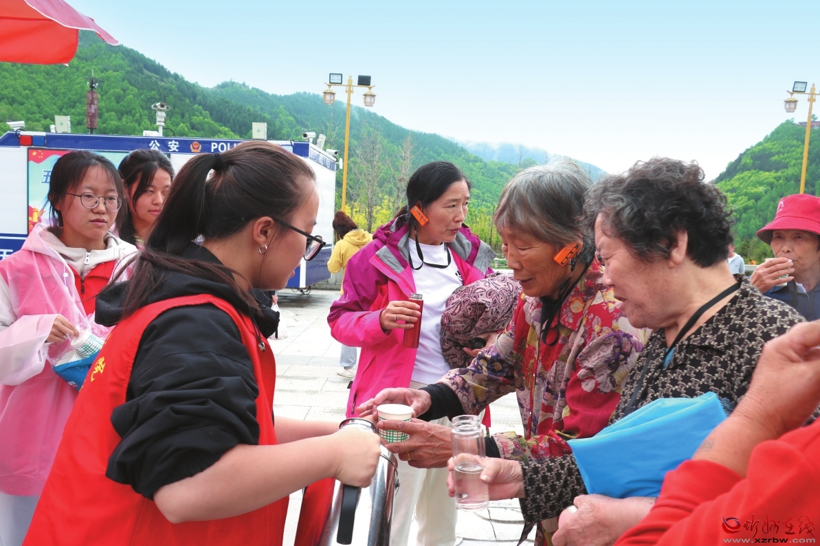 五臺(tái)山景區(qū)志愿者為游客服務(wù)。馬曉琴攝