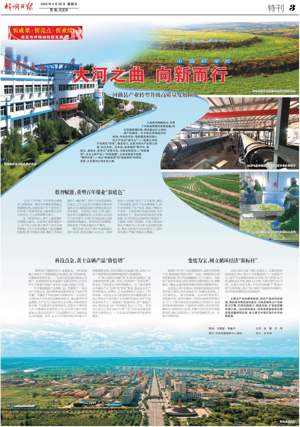 九曲黃河蜿蜒而過,孕育了河曲縣厚重的發(fā)展底蘊;時代浪潮奔涌向前,推動著這片土地加速產(chǎn)業(yè)蝶變。作為依托資源起步的縣域,河曲縣深知,高質(zhì)量發(fā)展的核心在于產(chǎn)業(yè)的“破與立”——既要讓傳統(tǒng)產(chǎn)業(yè)褪去“舊色”、煥發(fā)活力,也要為新興產(chǎn)業(yè)培土筑基、搶占先機。近年來,該縣錨定“數(shù)字化、智能化、高端化、綠色化”發(fā)展方向,為煤業(yè)轉(zhuǎn)型注入“智能基因”,為鄉(xiāng)土特產(chǎn)注入“科技能量”,從廢棄資源中挖掘“循環(huán)價值”,一場從“依賴資源”到“創(chuàng)新驅(qū)動”的深刻變革,正在黃河之畔生動上演。