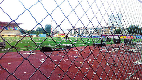 6月18日晚,市體育場(chǎng)在舉辦完一場(chǎng)音樂盛會(huì)后,現(xiàn)場(chǎng)一片狼藉,垃圾滿地。臟亂的場(chǎng)面給工作人員帶來很大工作量,希望市民還是要多愛護(hù)公共場(chǎng)所環(huán)境衛(wèi)生。(網(wǎng)友:藍(lán)天碧水 攝)