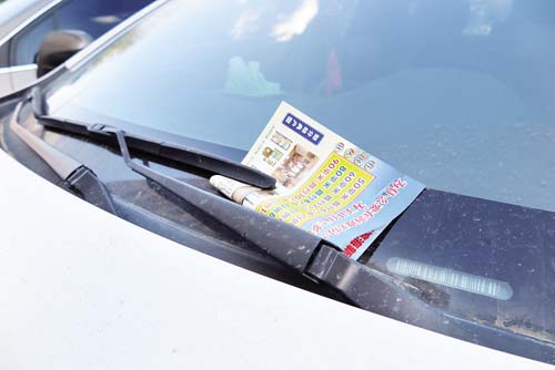 情況三:在日常生活里,我們經常會看到一些散發(fā)銷售商品房廣告的人將廣告紙放到汽車的雨刮器下面,如果駕駛員不及時清理,會遮擋前方玻璃的視線;一旦廣告紙順勢滑入汽車前蓋下的驅動器械里面,還可能造成不可預測的安全隱患。
