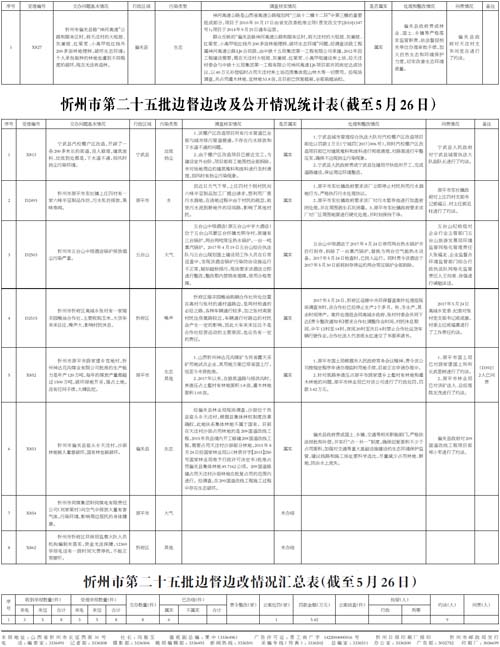 忻州市第二十四批邊督邊改及公開情況統(tǒng)計(jì)表(X827)(截至5月26日)