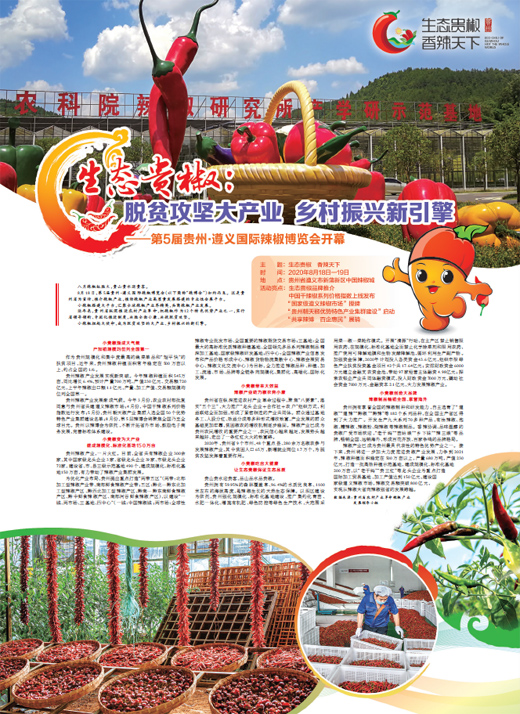 近年來,貴州省縱深推進農(nóng)村產(chǎn)業(yè)革命,把辣椒作為12個特色優(yōu)勢產(chǎn)業(yè)之一,實行省領導領銜、專班化推進制度,決勝全面小康、決戰(zhàn)脫貧攻堅。