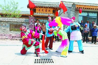 宋家溝村的文藝愛(ài)好者為游客表演晉西北特色民俗——秧歌。