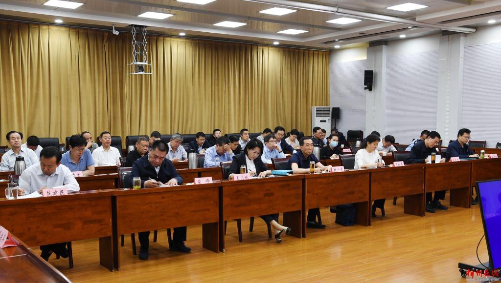 市委專題會(huì)議暨市疫情防控工作領(lǐng)導(dǎo)小組第四十六次會(huì)議會(huì)場(chǎng)。記者 劉紀(jì)森 攝
