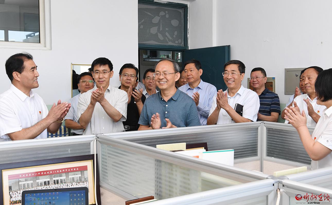 每到一處,朱曉東都向教師們致以節(jié)日問(wèn)候。長(zhǎng)征小學(xué)西校區(qū)是一所高標(biāo)準(zhǔn)規(guī)劃、高水平建設(shè)的新建學(xué)校,今年秋季學(xué)期投入使用。朱曉東察看電子圖書閱覽等教學(xué)新設(shè)施,了解學(xué)校開(kāi)設(shè)的書法、歌唱、手工、足球、乒乓球、跆拳道、機(jī)器人組裝等特色教育課程,隨機(jī)檢查學(xué)生飲用水機(jī)具,向從基層選拔聘用的優(yōu)秀教師代表贈(zèng)送書籍,勉勵(lì)大家珍惜崗位,肩負(fù)起時(shí)代賦予的重任,全心全意培養(yǎng)好人才。具有40多年歷史的忻州六中辦學(xué)底蘊(yùn)厚重,近年來(lái)與時(shí)俱進(jìn)提升教學(xué)能力。朱曉東實(shí)地了解學(xué)校發(fā)展情況后,一一為教師代表獻(xiàn)上鮮花,感謝大家辛勤付出,希望學(xué)校越辦越好,讓孩子們?cè)趯W(xué)校有更多收獲。忻州高級(jí)中學(xué)教學(xué)設(shè)施先進(jìn),教師隊(duì)伍素質(zhì)高、經(jīng)驗(yàn)豐富,今年學(xué)校畢業(yè)班高考再次取得好成績(jī)。朱曉東詳細(xì)了解學(xué)校歷史和往屆學(xué)生成就,鼓勵(lì)教師們放長(zhǎng)眼光,對(duì)照更高標(biāo)準(zhǔn)繼續(xù)努力,為忻州增光添彩。