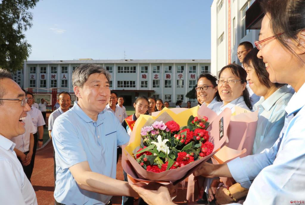 朱曉東在慰問(wèn)時(shí)強(qiáng)調(diào),教師崗位光榮、使命重大,是決定學(xué)校辦學(xué)質(zhì)量的關(guān)鍵。忻州教育事業(yè)一年一個(gè)新臺(tái)階、一年一個(gè)新變化,與廣大教師的努力付出、辛勤工作息息相關(guān)。教師的工作是為地方、為社會(huì)、為國(guó)家打基礎(chǔ)、立長(zhǎng)遠(yuǎn)的戰(zhàn)略性工作,各級(jí)各部門要堅(jiān)決貫徹落實(shí)黨的教育方針,尊重教師、呵護(hù)教師、全力保障教師。教師要全面落實(shí)立德樹人根本任務(wù),尊重教育規(guī)律和人才成長(zhǎng)規(guī)律,把社會(huì)主義核心價(jià)值觀融入教育全過(guò)程,促進(jìn)孩子們健康快樂(lè)地成長(zhǎng)。要讓孩子們包括文化知識(shí)在內(nèi)全面發(fā)展,像澆灌苗木一樣不斷培養(yǎng)塑造學(xué)生的心靈,讓孩子們有愛(ài)心,愛(ài)家人、愛(ài)社會(huì)、愛(ài)祖國(guó),讓孩子們?cè)谥R(shí)儲(chǔ)備、心理健康、寬廣胸懷、廣闊視野上打好基礎(chǔ),讓忻州的學(xué)子在步入社會(huì)后,個(gè)個(gè)綜合素質(zhì)優(yōu)越,潛力長(zhǎng)遠(yuǎn)、底蘊(yùn)深厚,成為一個(gè)個(gè)為社會(huì)作貢獻(xiàn)的人才。希望廣大教師根據(jù)自身實(shí)踐,結(jié)合忻州實(shí)際,在教學(xué)、教育方面提出好的意見(jiàn)和建議,大家凝聚智慧,共同努力把忻州的教育質(zhì)量、教育事業(yè)辦得更加讓人民滿意,更加出彩。