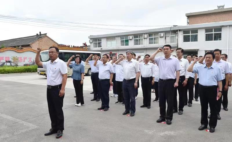 與五臺(tái)縣應(yīng)急管理局黨支部同志重溫入黨誓詞。馮曉磊 攝