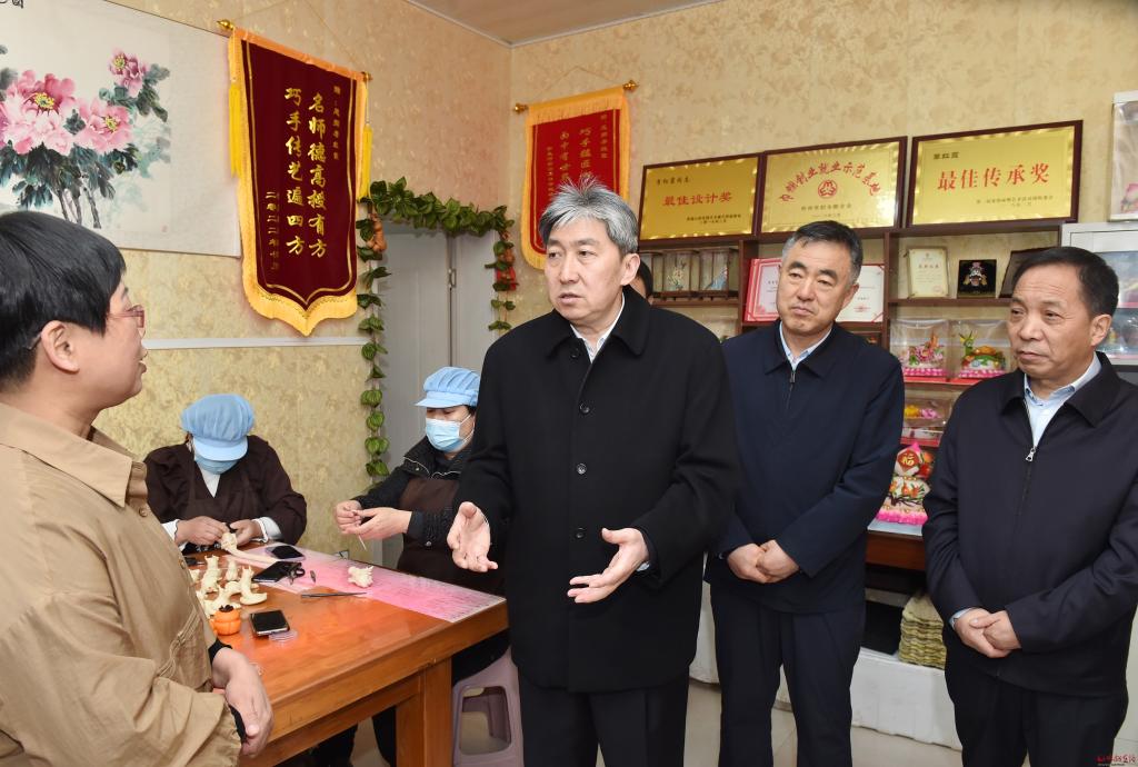 非遺傳承人李紅霞主要從事面塑工藝品和花饃制作與銷售工作,由她創(chuàng)辦的紅霞鄉(xiāng)情守藝坊,吸收了當(dāng)?shù)責(zé)o業(yè)和老弱病殘人員20余人。走訪中,朱曉東來(lái)到李紅霞處,詳細(xì)了解面塑的歷史、現(xiàn)狀、未來(lái)發(fā)展方向,詢問(wèn)她在經(jīng)營(yíng)、培訓(xùn)、傳承中存在的困難和問(wèn)題。朱曉東指出,非遺傳承人是非物質(zhì)文化遺產(chǎn)重要的承載者和傳承者,在傳統(tǒng)文化和民間藝術(shù)的延續(xù)發(fā)展中發(fā)揮著關(guān)鍵性作用。要積極主動(dòng)為傳承人搭建展示推廣平臺(tái),讓珍貴的傳統(tǒng)技藝有序、有效傳承下去。希望傳承人進(jìn)一步堅(jiān)定文化自信,結(jié)合時(shí)代發(fā)展的特點(diǎn),不斷推陳出新,做好產(chǎn)品研發(fā)和創(chuàng)新,注重實(shí)用價(jià)值轉(zhuǎn)化,在宣傳、品質(zhì)、特色和工業(yè)化、標(biāo)準(zhǔn)化方面下功夫,開(kāi)展好授徒傳藝,賦予非遺項(xiàng)目新的活力,將“小花饃”產(chǎn)業(yè)做大做強(qiáng)。