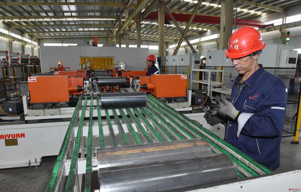 在山西晉享環(huán)保設(shè)備股份有限公司觀摩檢查污廢水處理環(huán)保成套設(shè)備及配套產(chǎn)品生產(chǎn)項目建設(shè)情況。馮曉磊攝
