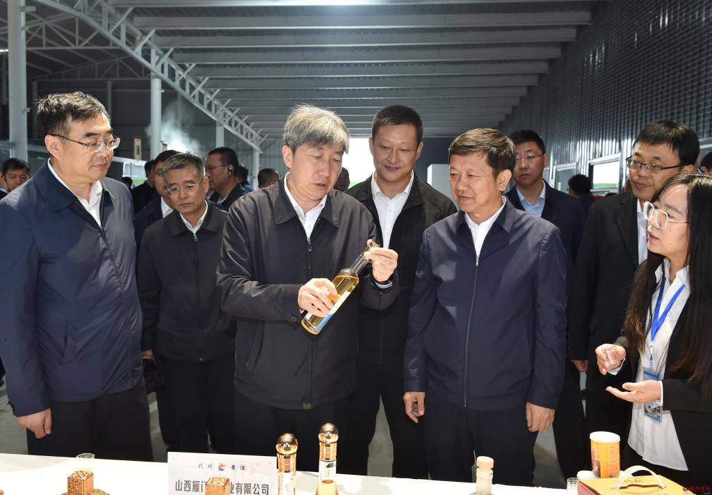 在山西雁門關(guān)酒業(yè)有限公司觀摩檢查年產(chǎn)1200噸清香型白酒、5000噸黃酒自動化生產(chǎn)線及古法釀酒項目建設(shè)情況。馮曉磊攝
