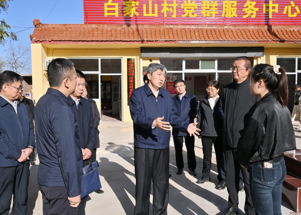 在系舟山南麓柳林尖腳下的忻府區(qū)董村鎮(zhèn)白家山村,朱曉東走到村民中了解土地產(chǎn)出、生計收入情況,到村黨支部了解組織建設(shè)、集體經(jīng)濟發(fā)展、村莊長遠規(guī)劃等情況。在董村鎮(zhèn)太延村,朱曉東察看閑置校舍屋頂建起的光伏發(fā)電項目,聽取村里長茄種植、村民外出包工就業(yè)以及村集體經(jīng)濟壯大情況,察看牧南總排渠局部治理效果。在北義井鄉(xiāng)安邑村,朱曉東了解村民傳統(tǒng)副業(yè)收入途徑,聽取村黨組織和干部隊伍建設(shè)情況匯報,入戶察看煤改電工程和戶廁改造效果,了解村民改造意愿。