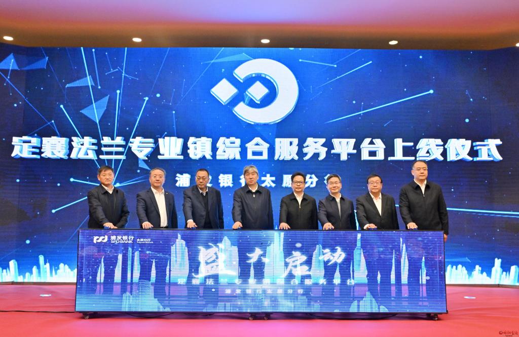 定襄·浦發(fā)銀行太原分行“法蘭專業(yè)鎮(zhèn)金融綜合服務(wù)平臺”上線儀式現(xiàn)場。馮曉磊 攝