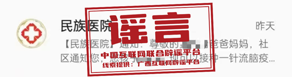 謠言:廣西壯族自治區(qū)民族醫(yī)院發(fā)布關(guān)于流腦疫苗接種通知?