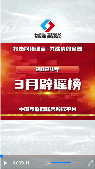 ——中國互聯(lián)網聯(lián)合辟謠平臺2024年3月辟謠榜綜述