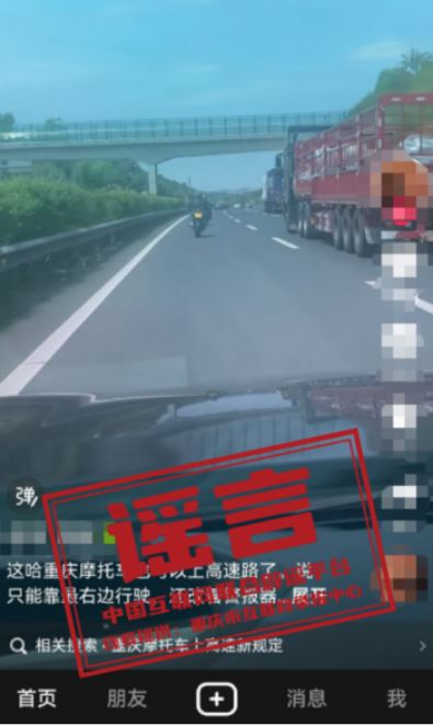 真相:近日,重慶市大足區(qū)網(wǎng)民楊某在互聯(lián)網(wǎng)平臺發(fā)布信息稱“重慶摩托車也可以上高速路了”,引發(fā)關(guān)注。經(jīng)交管部門核實(shí),根據(jù)《重慶市公路管理?xiàng)l例》第三十一條規(guī)定:在高速公路、高速公路用地范圍內(nèi),禁止非機(jī)動車、摩托車、拖拉機(jī)、輪式專用機(jī)械車、鐵輪車、履帶車和可能損害路面的機(jī)具行駛。網(wǎng)傳信息系謠言。目前,大足警方已對造謠網(wǎng)民楊某依法予以查處。(來源:“重慶辟謠”微信公眾號)