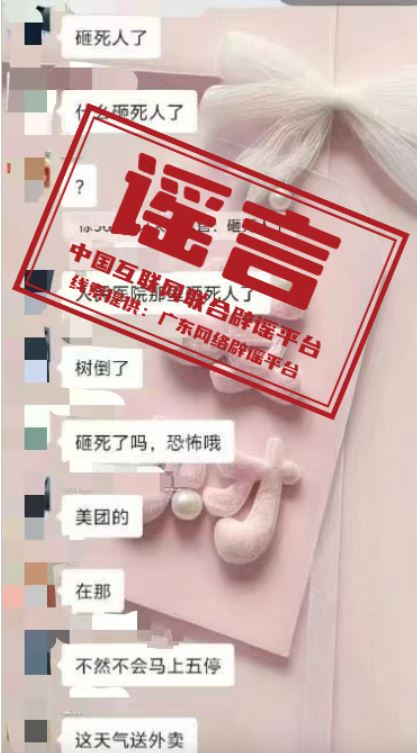 謠言:廣東湛江受臺風“麥德姆”影響全市停水?茂名一外賣員臺風天遭樹木砸死?
