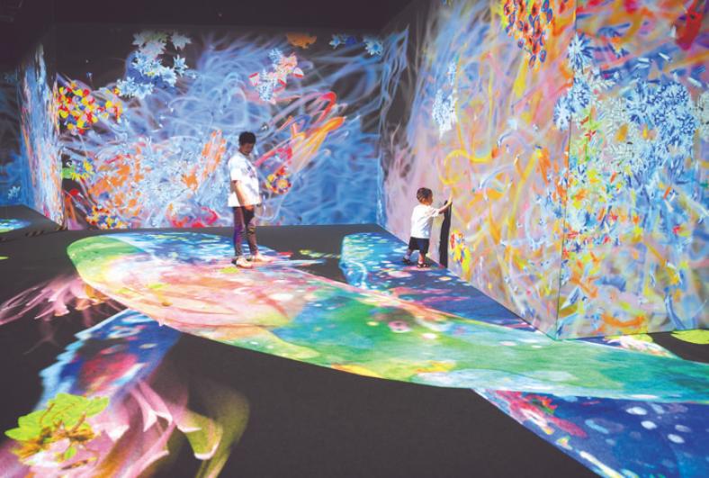 6月6日,小朋友在科技藝術(shù)節(jié)上的“teamLab Future Park”未來游樂園中體驗交互動畫。