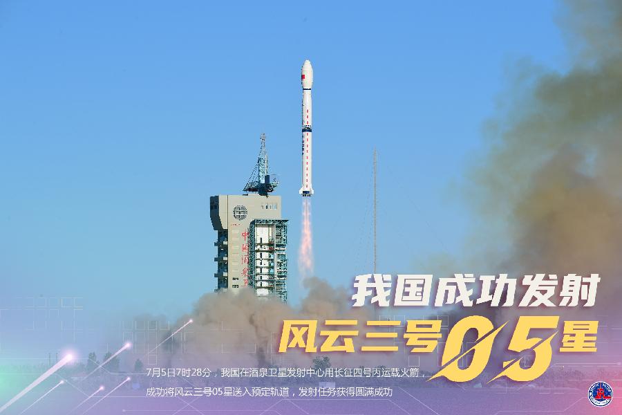 7月5日7時(shí)28分,我國(guó)在酒泉衛(wèi)星發(fā)射中心用長(zhǎng)征四號(hào)丙運(yùn)載火箭,成功將風(fēng)云三號(hào)05星送入預(yù)定軌道,發(fā)射任務(wù)獲得圓滿(mǎn)成功。新華社發(fā)(汪江波 攝)