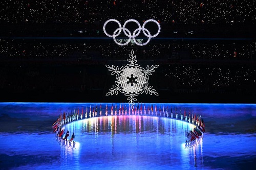 2月4日晚,第二十四屆冬季奧林匹克運(yùn)動會開幕式在北京國家體育場舉行。這是開幕式上的“冰雪五環(huán)”。新華社記者丁旭 攝