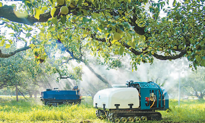 安徽省宿州市碭山縣近年大力推廣“人工智能+數(shù)字果園”模式,推動(dòng)碭山酥梨產(chǎn)業(yè)智能化、數(shù)字化轉(zhuǎn)型,為鄉(xiāng)村振興和數(shù)字鄉(xiāng)村建設(shè)夯實(shí)基礎(chǔ)。圖為碭山縣一家果園內(nèi),果園機(jī)器人在噴施生物農(nóng)藥。崔 猛攝(人民視覺)