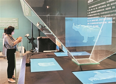 在“數(shù)說犀尊”展覽上,展廳綜合運(yùn)用了高清三維掃描、超高清顯示、人工智能、紅外感應(yīng)、增強(qiáng)現(xiàn)實等科技手段展示文物研究成果??萍既請笥浾?洪星攝