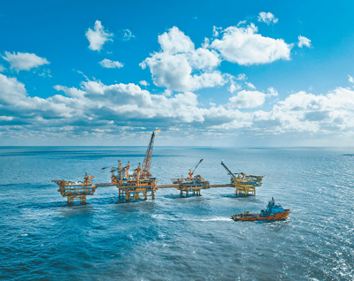 圖為渤中19—6氣田Ⅰ期開發(fā)項(xiàng)目。費(fèi)振宇攝(人民視覺)