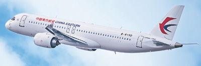 工業(yè)級流體仿真大模型“東方·御風”助力中國C919大型客機早日翱翔藍天。圖為2023年12月9日,中國東方航空接收的第三架C919大型客機從上海浦東國際機場起飛。新華社發(fā)