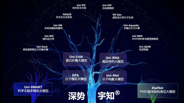 深勢科技聯(lián)合創(chuàng)始人、CEO孫偉杰介紹,近年來,深勢科技與協(xié)作者們推出了DPA分子模擬大模型、Uni-Mol分子構(gòu)象大模型、Uni-Fold蛋白折疊大模型、Uni-RNA基因序列大模型、Uni-Dock高性能分子對接引擎,以及Uni-SMART科學(xué)文獻(xiàn)多模態(tài)大模型等一系列科學(xué)大模型及底層引擎。