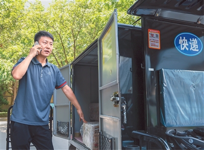 700專用號碼啟用后可方便消費者識別、提升快遞員、外賣員配送效率。在網(wǎng)約車行業(yè)推廣后,700專用號碼還將助力乘客精準(zhǔn)識別駕駛員來電,讓駕駛員接單更順暢,減少停車繞行。圖為6月29日,陜西省西安市的一位快遞員正用手機聯(lián)系顧客,準(zhǔn)備派送快件。新華社記者 毛思倩攝