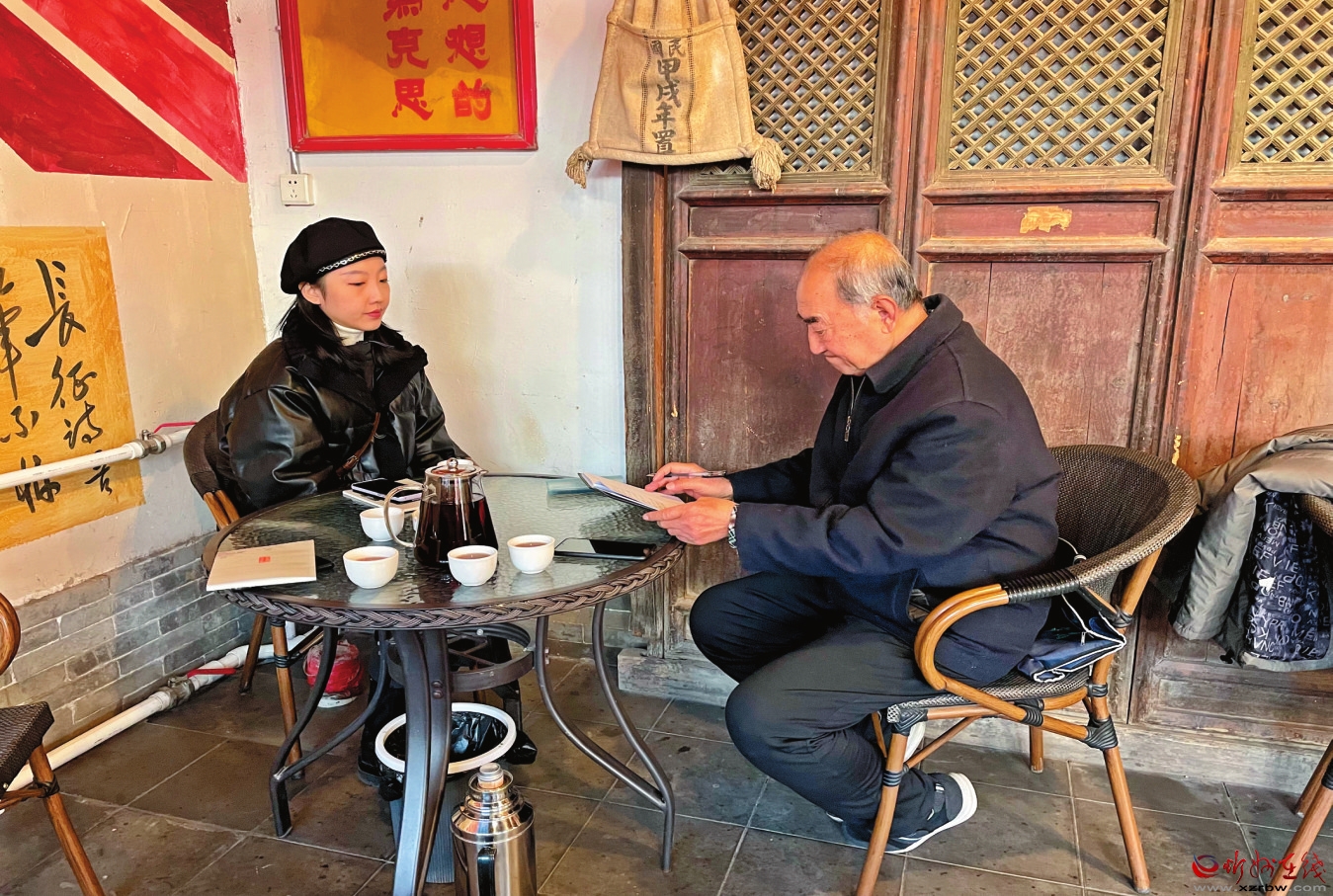 2023年的最后一天,上午10點,淵媛和忻州古城運營公司策劃部張經(jīng)理如約而至。我們相約的地點是古城南北大街的白公雞茶社。雖然初次見面,但之前都有一些基本了解,彼此間便不覺得生分。