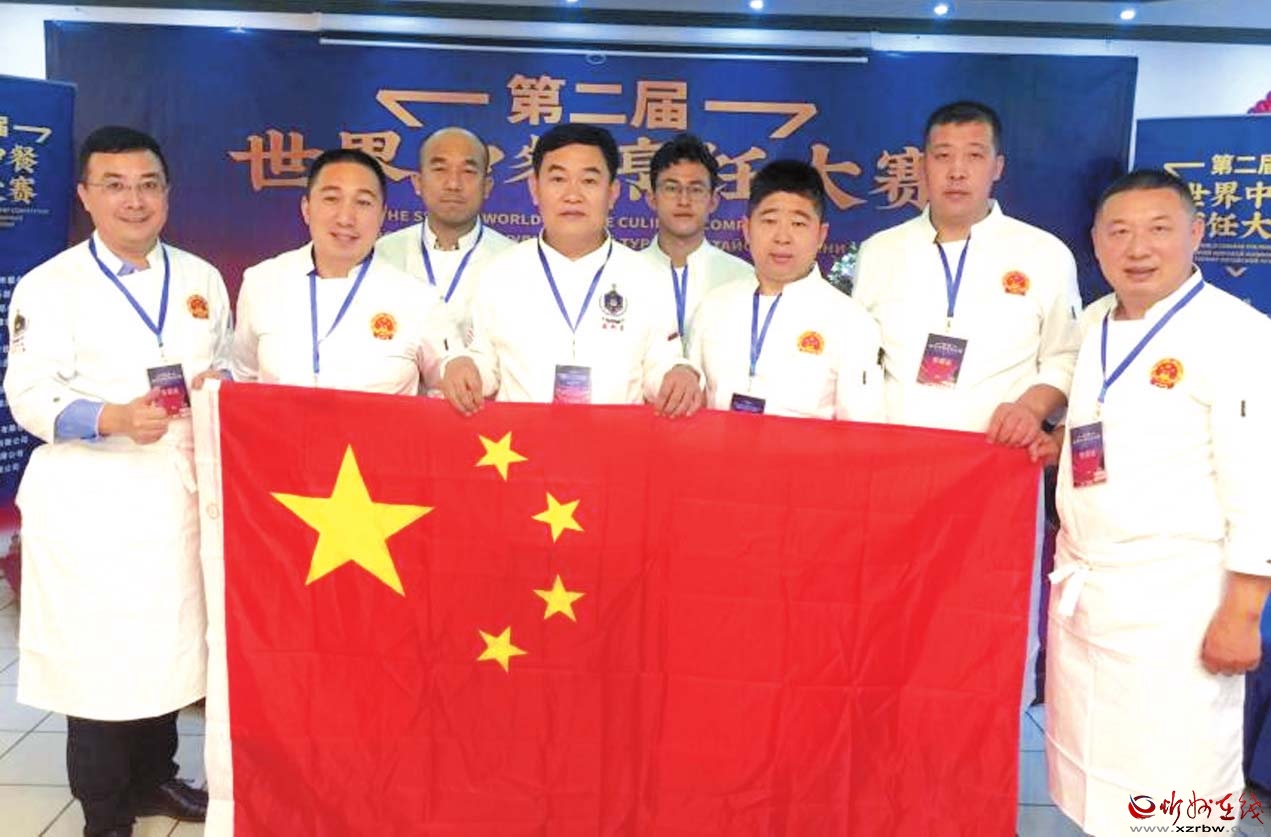 2019年10月,王力群(前排左三)帶領(lǐng)學(xué)員在莫斯科獲得了世界中餐大賽金獎(jiǎng)