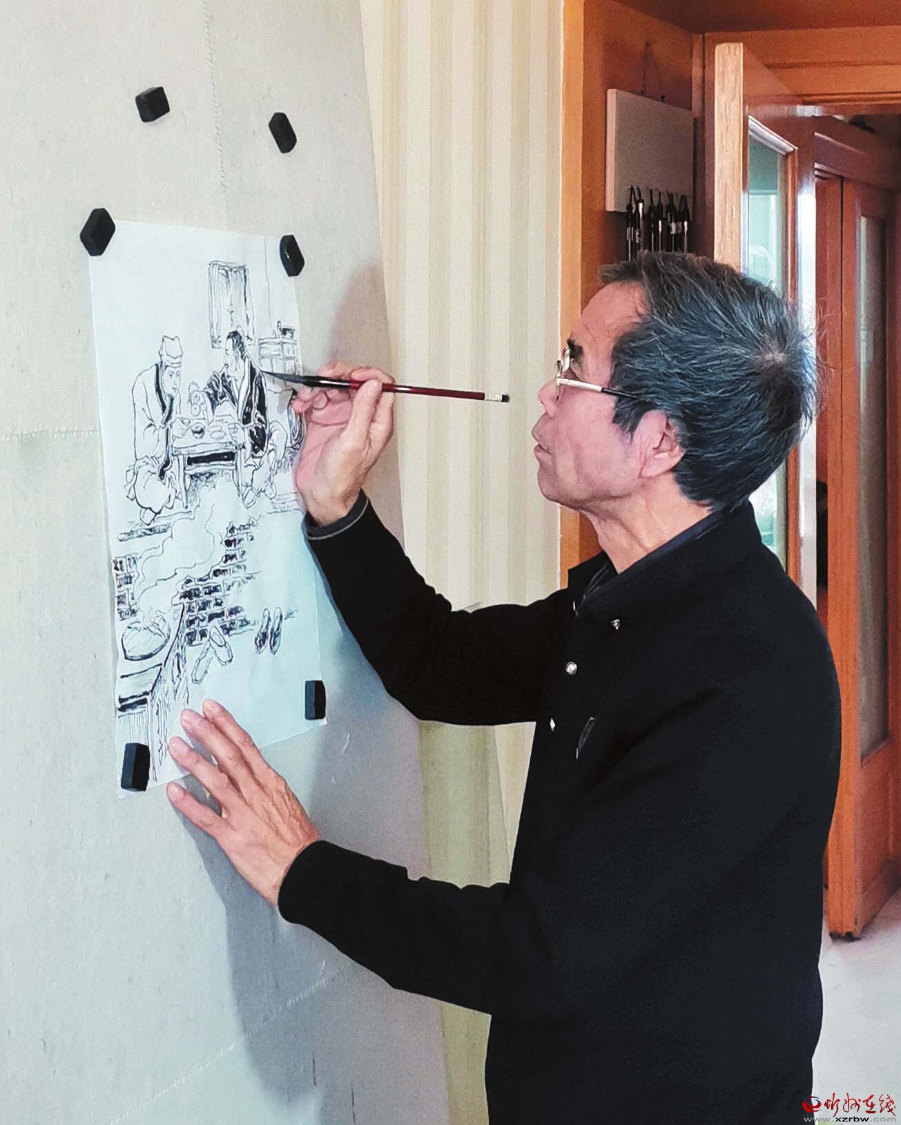 艾吉虎在全神貫注繪制“小人書”。