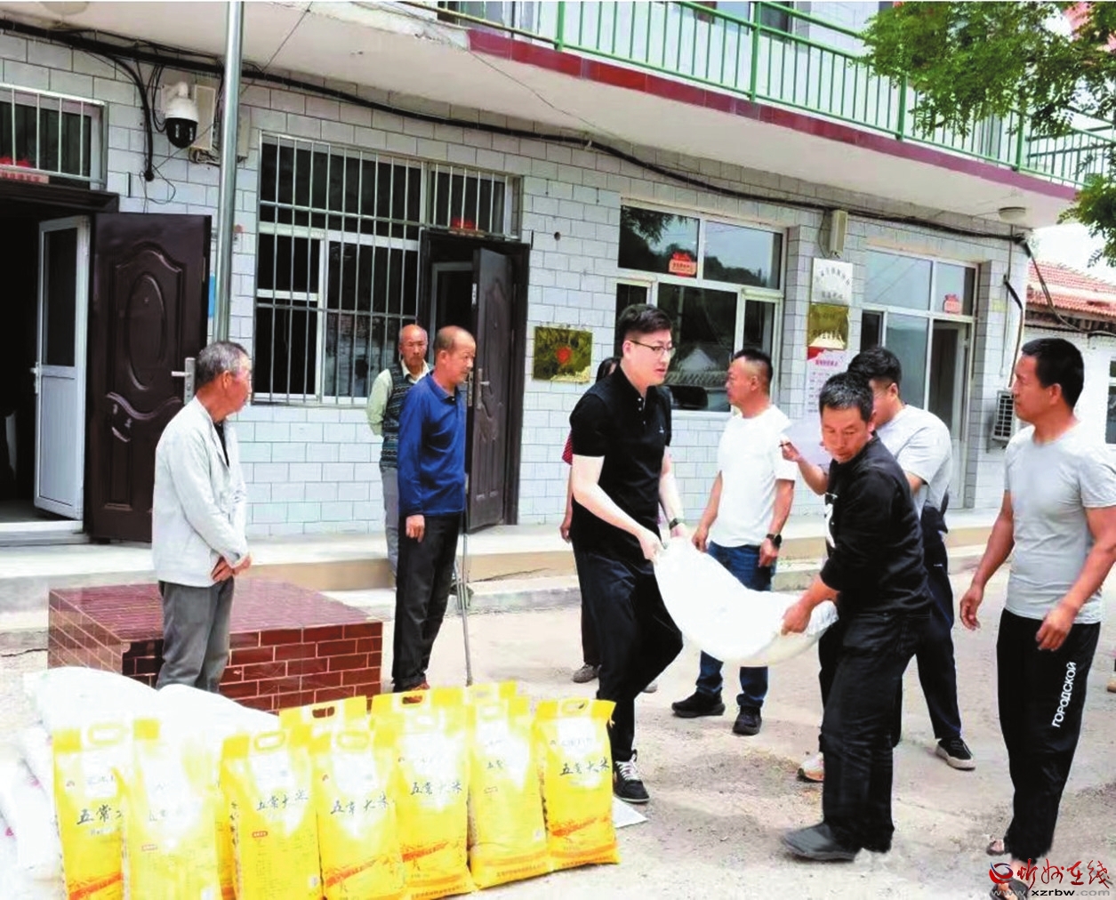 王愷麟同村“兩委”班子成員為特困家庭送物資。