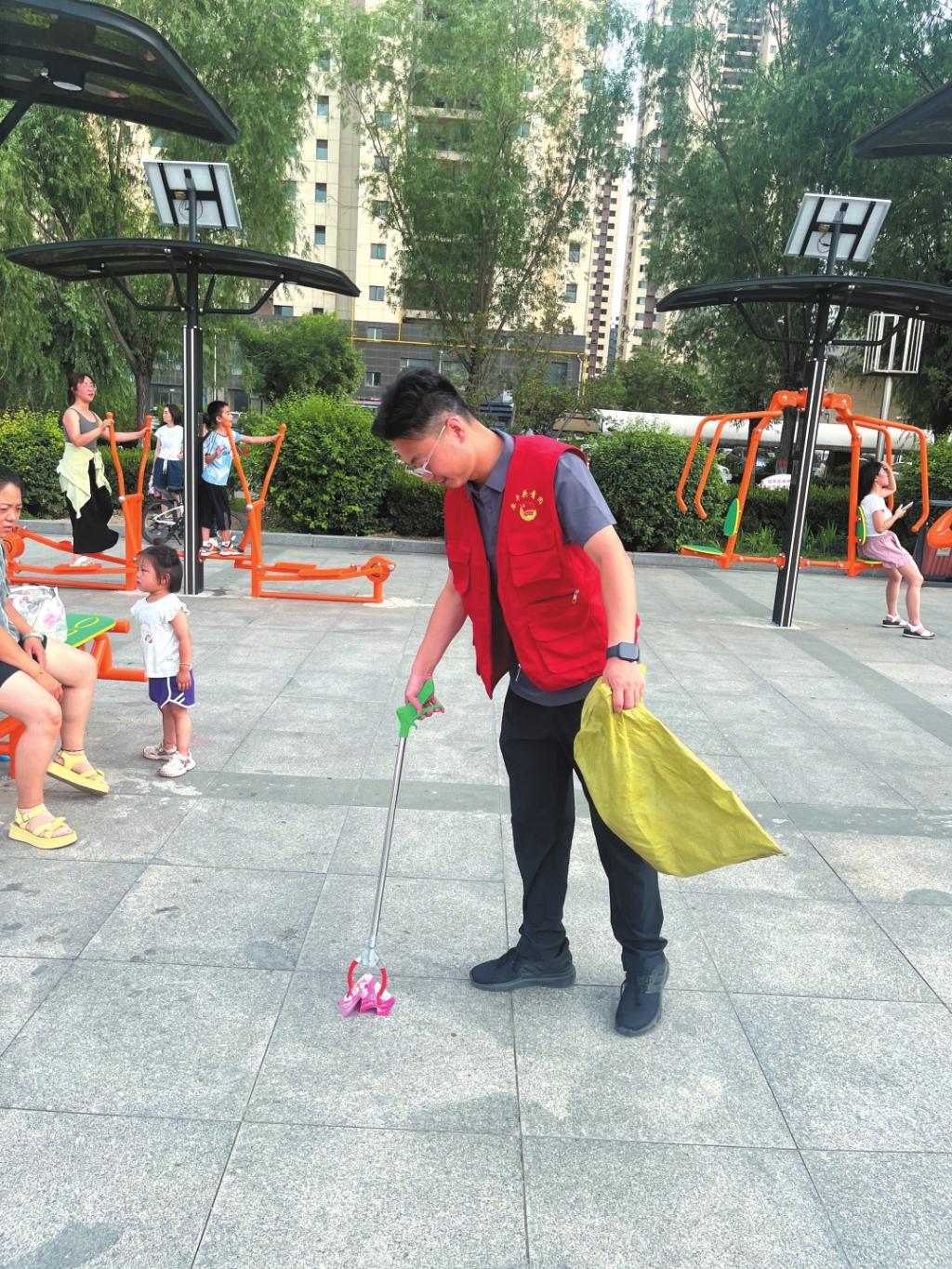 在交通文明勸導中,他不畏嚴寒酷暑,堅守路口和校園周邊,耐心引導市民文明出行,守護學生和群眾出行安全。在文體廣場、大型活動現(xiàn)場,他主動清理衛(wèi)生死角、維護現(xiàn)場秩序,成為城市中一道靚麗的“紅色風景”。
