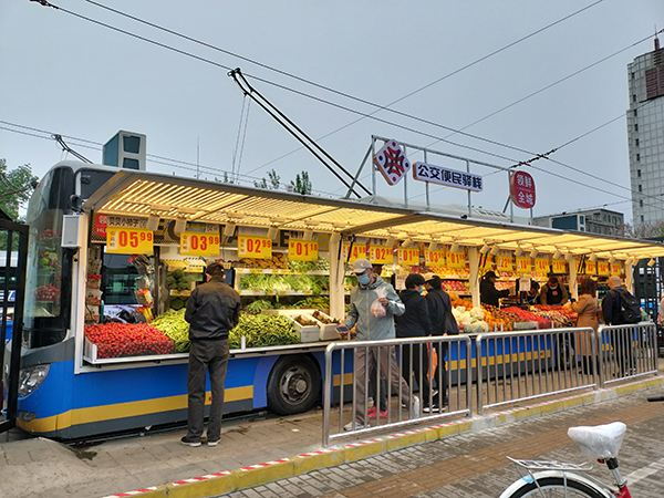 早上8點(diǎn),走出柳芳地鐵站,記者就看到一輛充滿公交車元素的“小型菜場(chǎng)”,前來買菜的人絡(luò)繹不絕。“以前經(jīng)常網(wǎng)購(gòu)水果,送過來都不太新鮮了,現(xiàn)在出門就能買,新鮮還實(shí)惠?!闭谔暨x水果的蔡阿姨說。