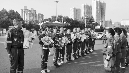 太原藍(lán)天應(yīng)急救援隊(duì)隊(duì)員回到太原。