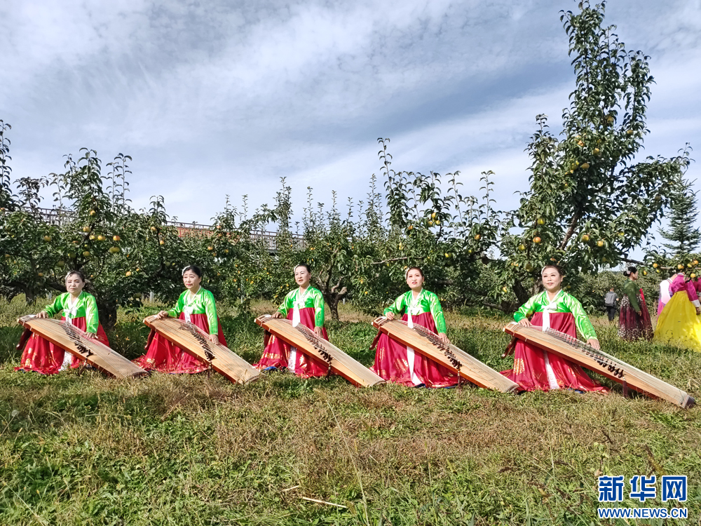 蘋果梨樹下的演奏 黃維攝/新華網(wǎng)發(fā)