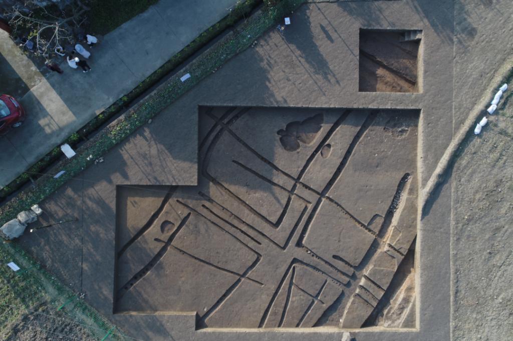 1981年三星堆遺址房屋基址航拍照(圖據(jù)四川省文物考古研究院)