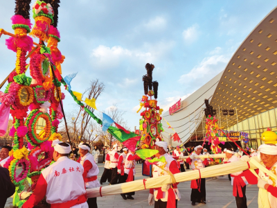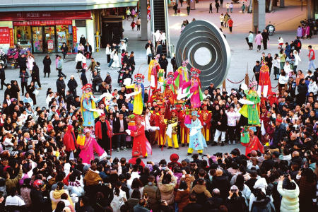 長治市萬達廣場社火表演精彩紛呈。