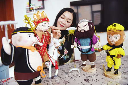 3.褚晶晶鉤編的唐僧師徒作為非遺展覽,很受歡迎。